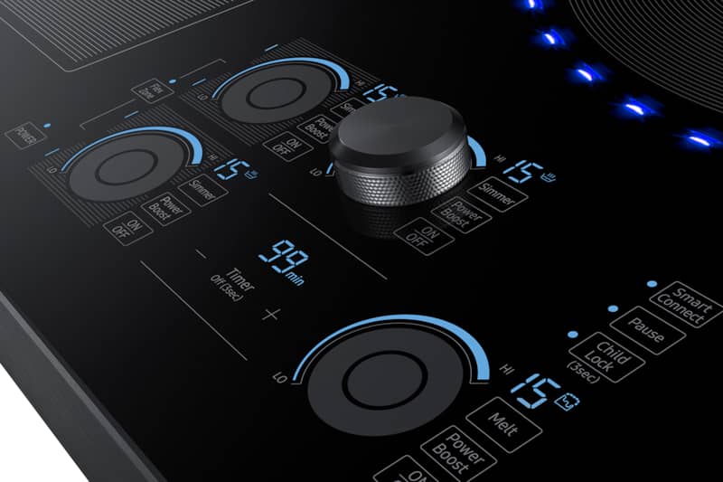Samsung NZ30K7880UG/AA ADA 30″ Fingerprint Resistant Black Stainless Steel Smart Induction CooktopFeaturing digital-analog controls, this smart versatile cooktop lets you choose between removable magnetic knobs or digital touch controls. Features