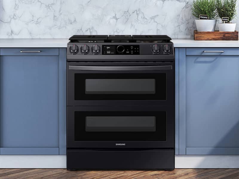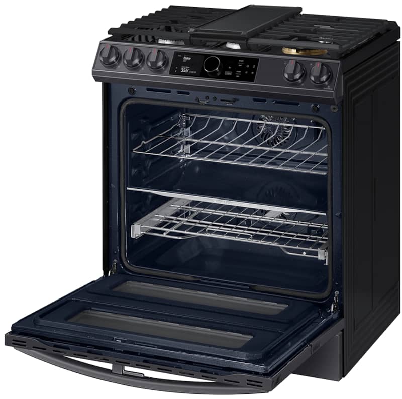 Samsung NY63T8751SG ADA 6.3 Cu. Ft. Fingerprint Resistant Black Stainless Steel Flex Duo Slide-In Dual Fuel Range With Air FryNote: The manufacturer does not include a power cord with this item due to different outlet configurations. Check your outlet configuration to determine which cord is required then click the accessories tab to purchase the correct one for your home. If you are still unsure, contact any of Abt’s Sales Specialists at 888.228.5800. The new Samsung Front Control Slide-in Dual Fuel Range with Smart Dial and Air Fry is fully Wi-Fi connected and voice enabled, giving you the tools you need to simplify the cooking experience in the kitchen. Features Smart Dial