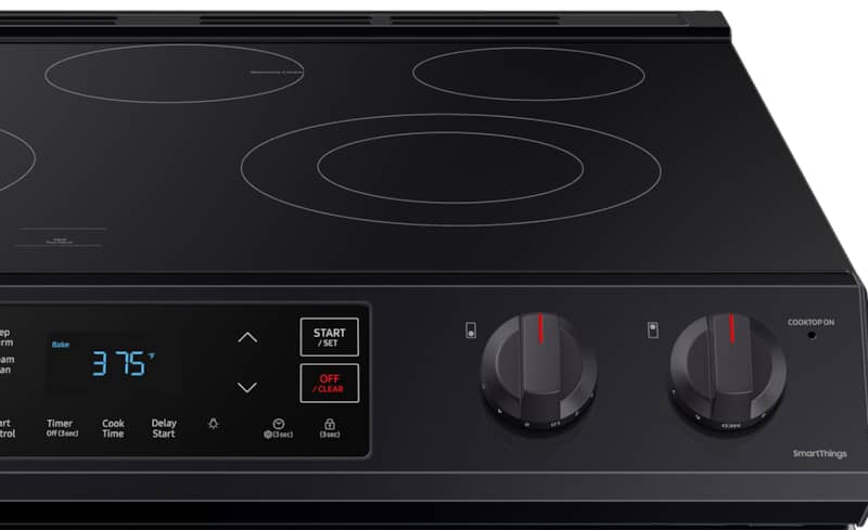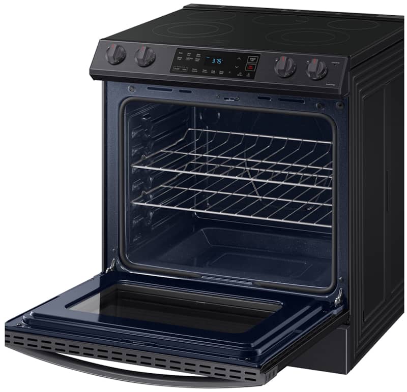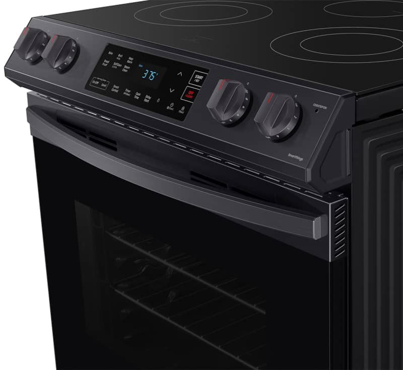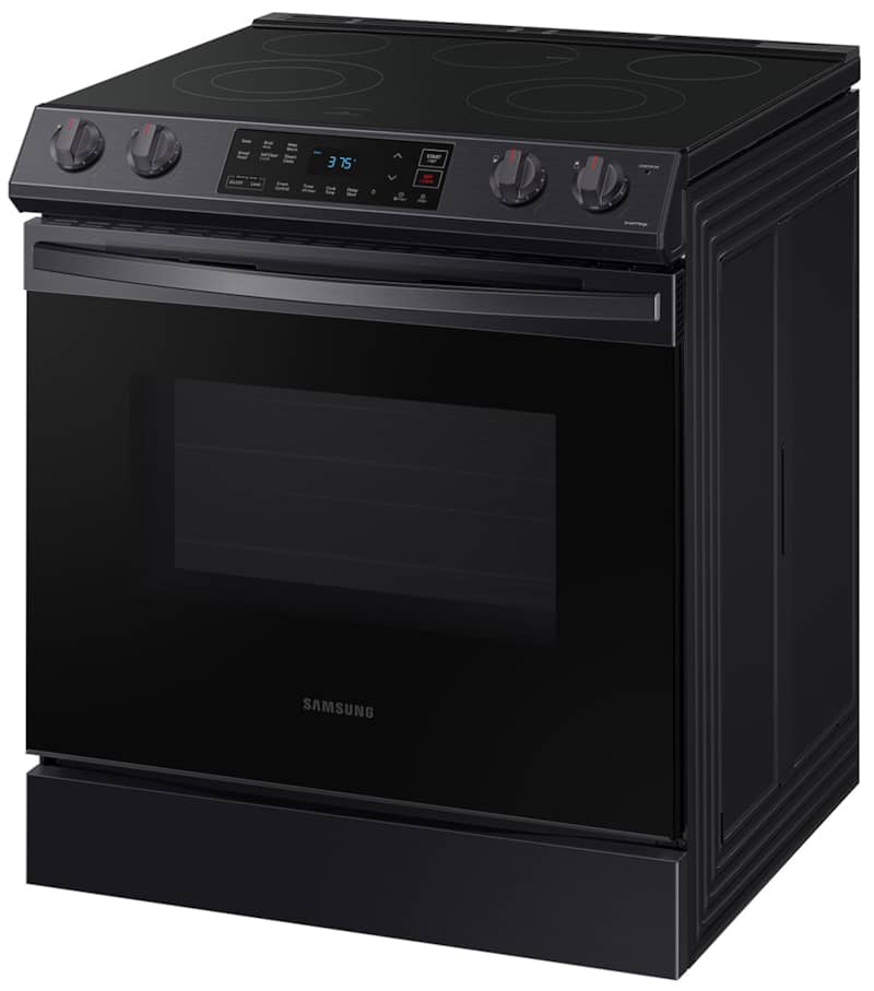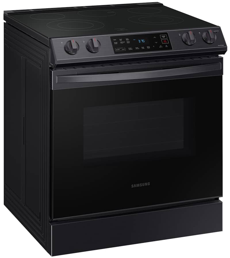 Samsung NE63T8111SG ADA 6.3 Cu. Ft. Fingerprint Resistant Black Stainless Steel Slide-In Electric RangeNote: The manufacturer does not include a power cord with this item due to different outlet configurations. Check your outlet configuration to determine which cord is required then click the accessories tab to purchase the correct one for your home. If you are still unsure, contact any of Abt’s Sales Specialists at 888.228.5800. The new Samsung Front Control Slide-In Electric Range is fully Wi-Fi connected and voice enabled, making it easy to create delicious meals for your family. Features Fingerprint Resistant Finish