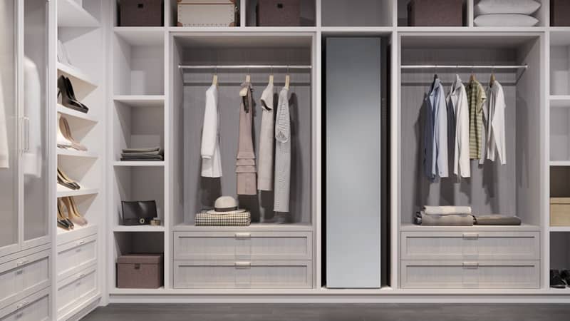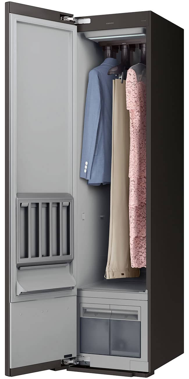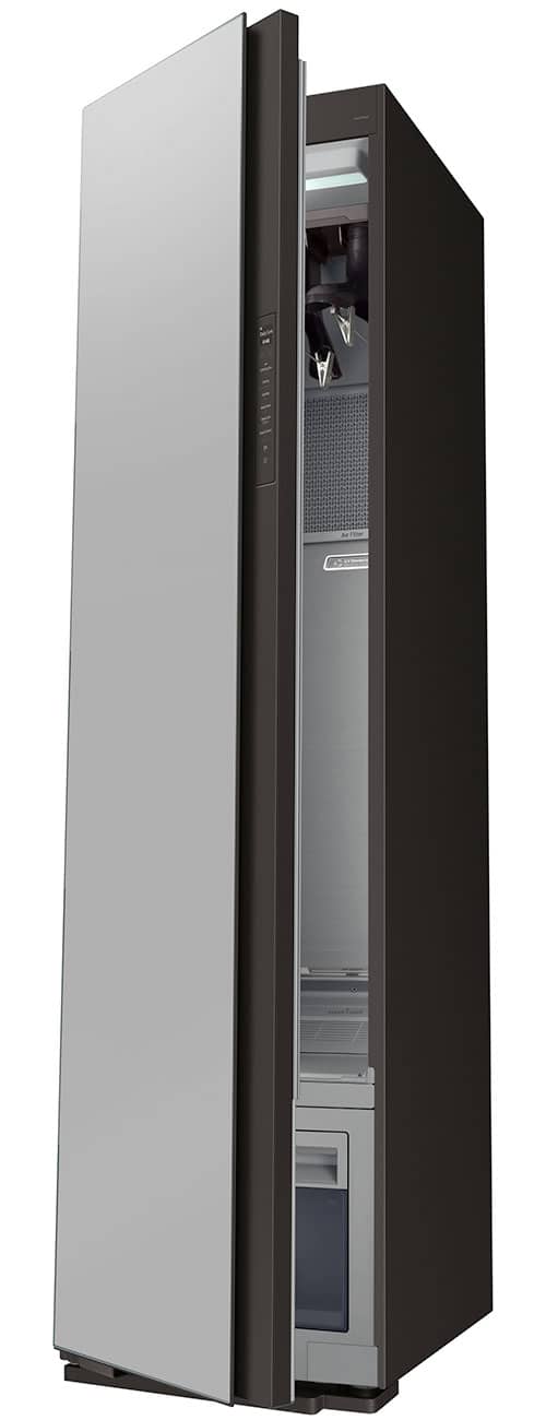 Samsung DF60A8500CG/A1 Bespoke Crystal Mirror AirDresser Clothing Care System With Steam Refresh & SanitizeSamsung’s new AirDresser uses powerful steam and air to relax light wrinkles and remove 99% of common bacteria, viruses, dust mites and odors from clothing.1 Features