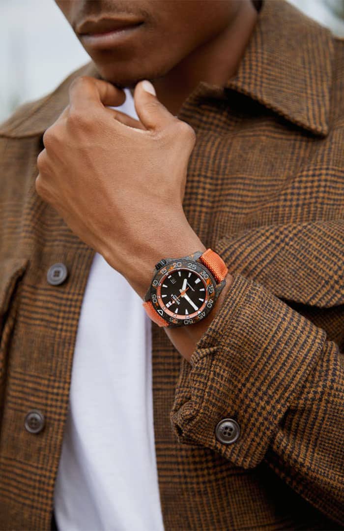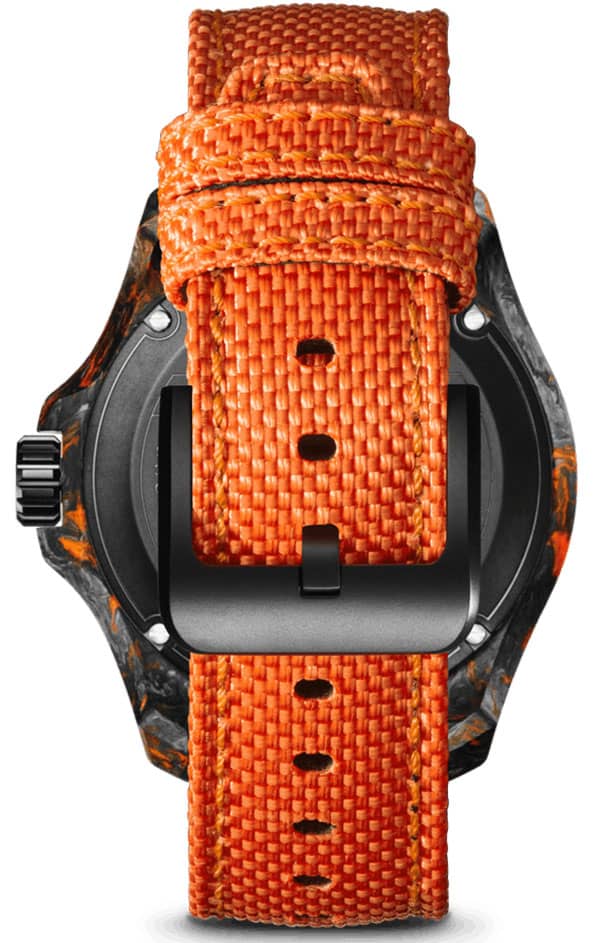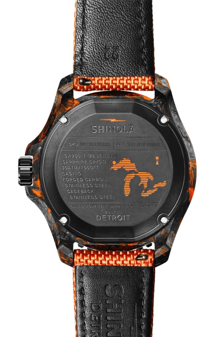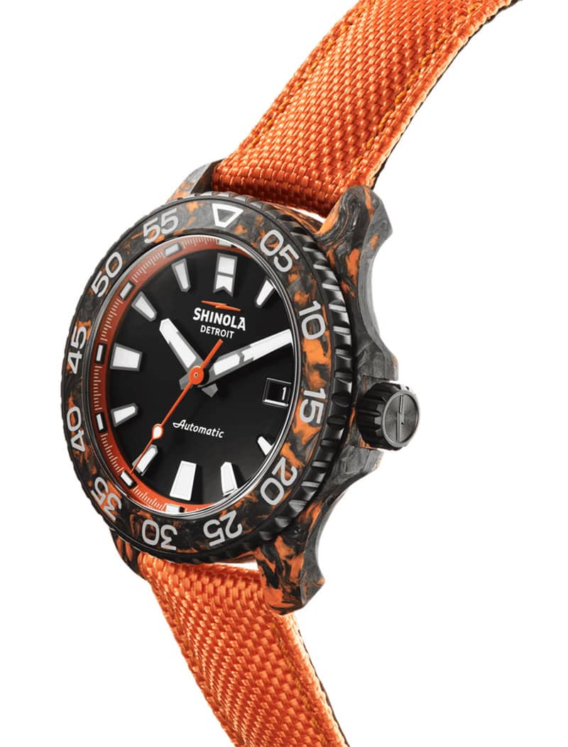 Shinola The Forged Carbon Monster Automatic Black Dial Leather-Backed Nylon Watch, 45mm