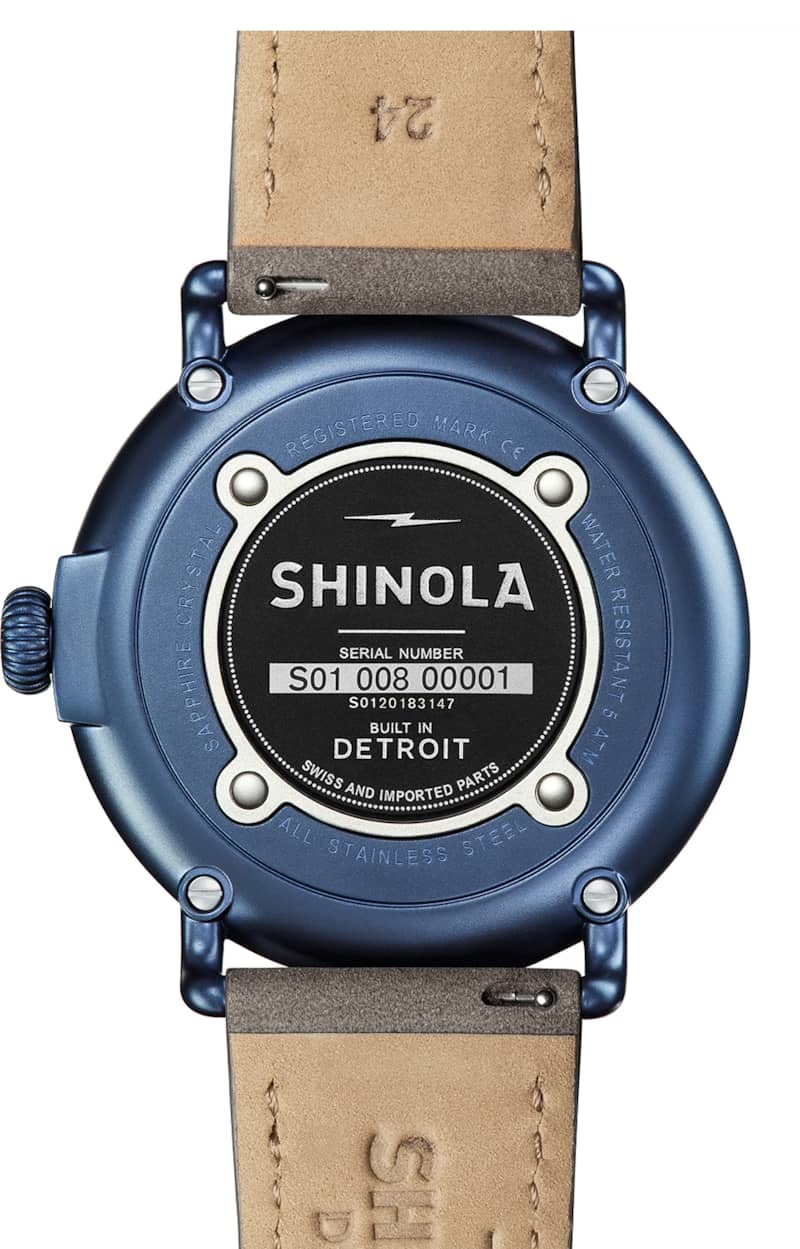 Shinola The Runwell 47mm Blue Hand Painted Dial Sandblast PVD Blue Mens Watch