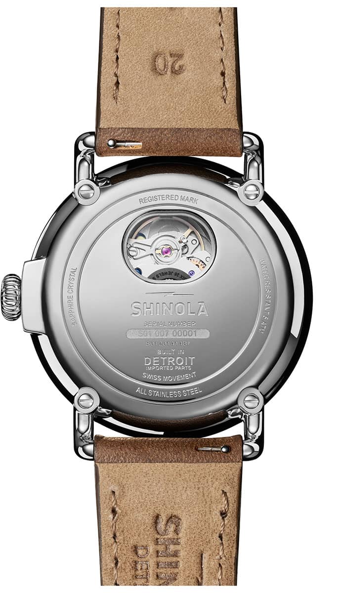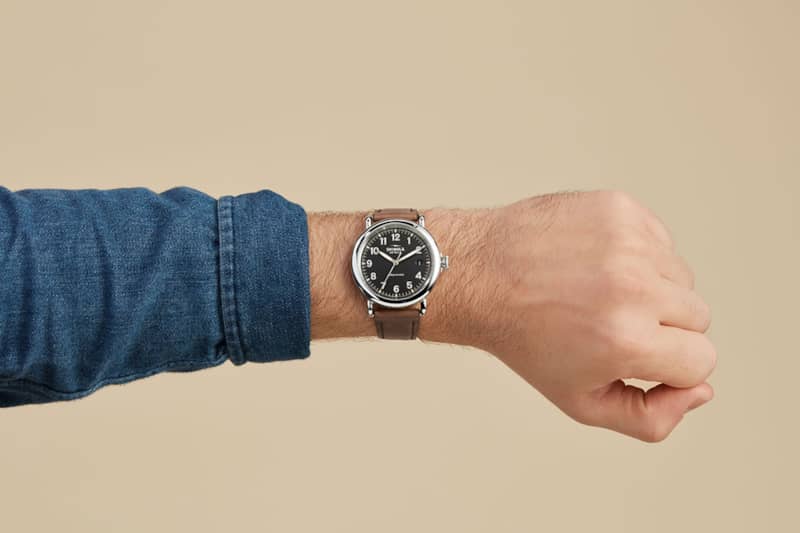 Shinola The Runwell Automatic Matte Black Dial Leather Watch, 39.5mm