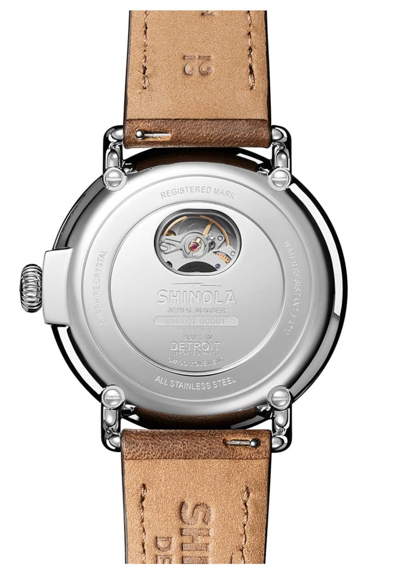 Shinola S0120141490 The Runwell Automatic 45mm Watch w/ Matte Black Dial & British Tan Leather StrapYou’ve been waiting, we’ve been working, and now the Runwell Automatic is finally here. Meet our flagship, now with the heart of an automatic and a refined design that was years in the making. It’s a major evolutionary moment for the timepiece that launched the Shinola brand. Recognizable but refreshed with thoughtful details, including microtracking, a richly-printed dial and an iconic caseback with a window into the inner workings of its workhorse movement, the Sellita SW200-1. Featuring a matte black vellum-textured dial and a premium leather strap in British tan, this heirloom-worthy timepiece is the epitome of the brand’s commitment to quality craftsmanship that refuses to be ignored. Features