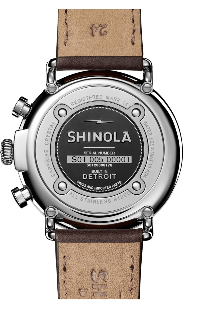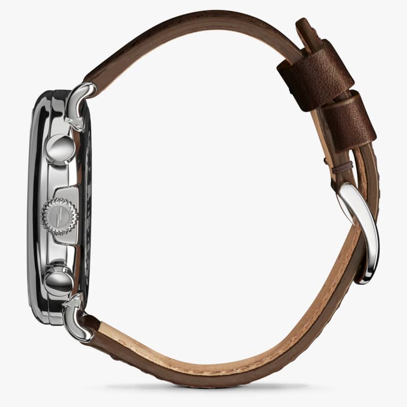 Shinola The Runwell Chrono Silver Sunray Dial Brown Leather Watch, 47mm
