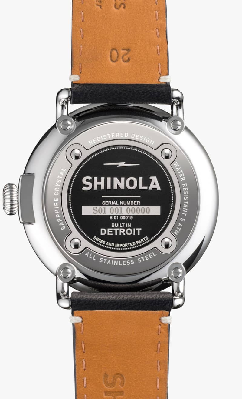 Shinola The Runwell White Dial Black Leather Strap Watch, 41mm
