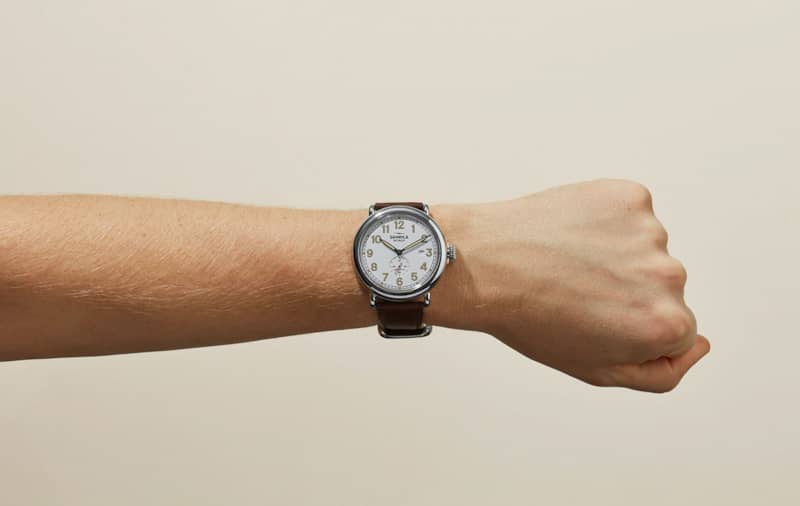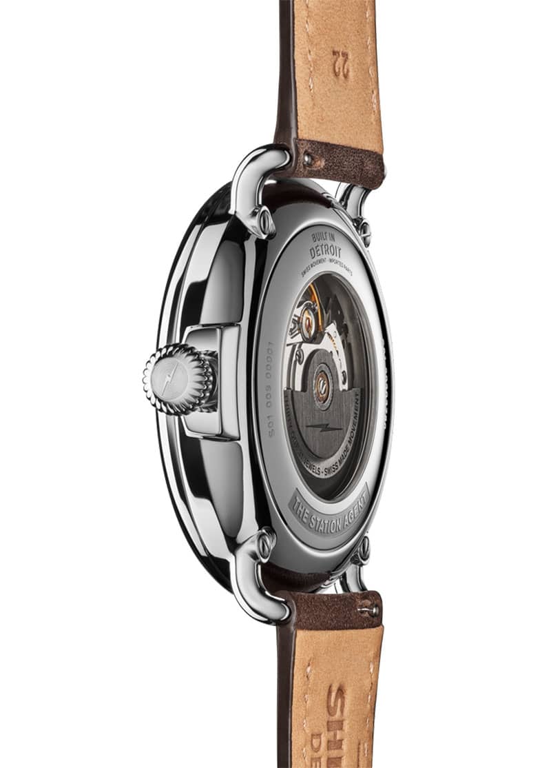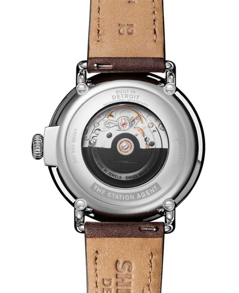 Shinola The Station Agent Automatic Brown Leather Watch, White Dial, 45mm