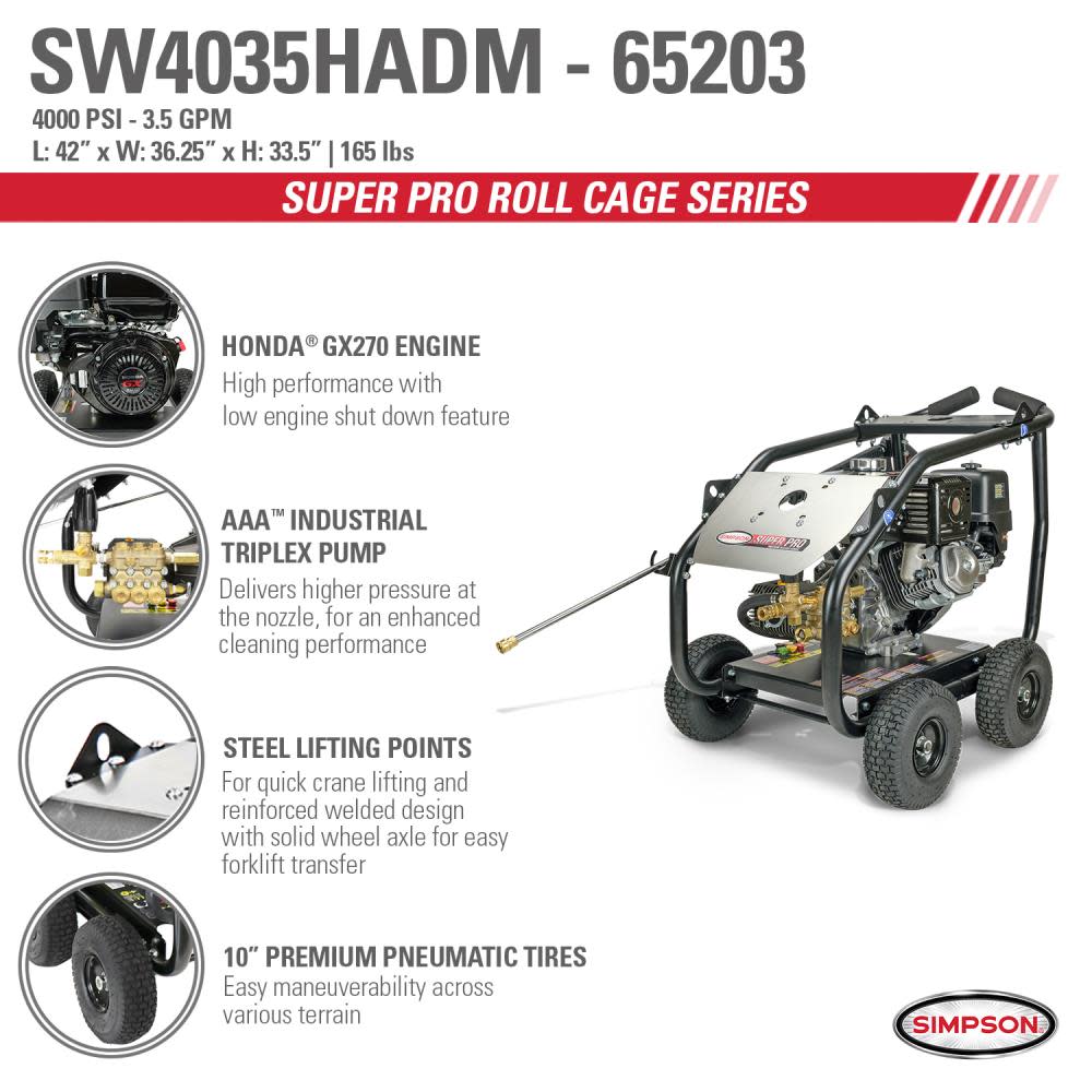 Simpson Super Pro Roll Cage Cold Water Professional Gas Pressure Washer 4000 PSI