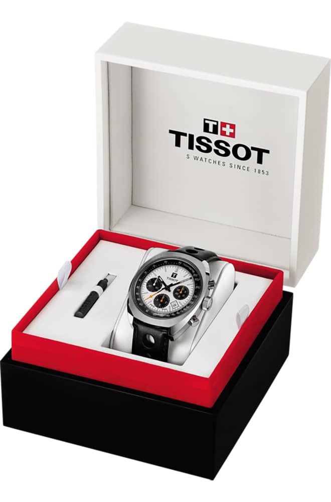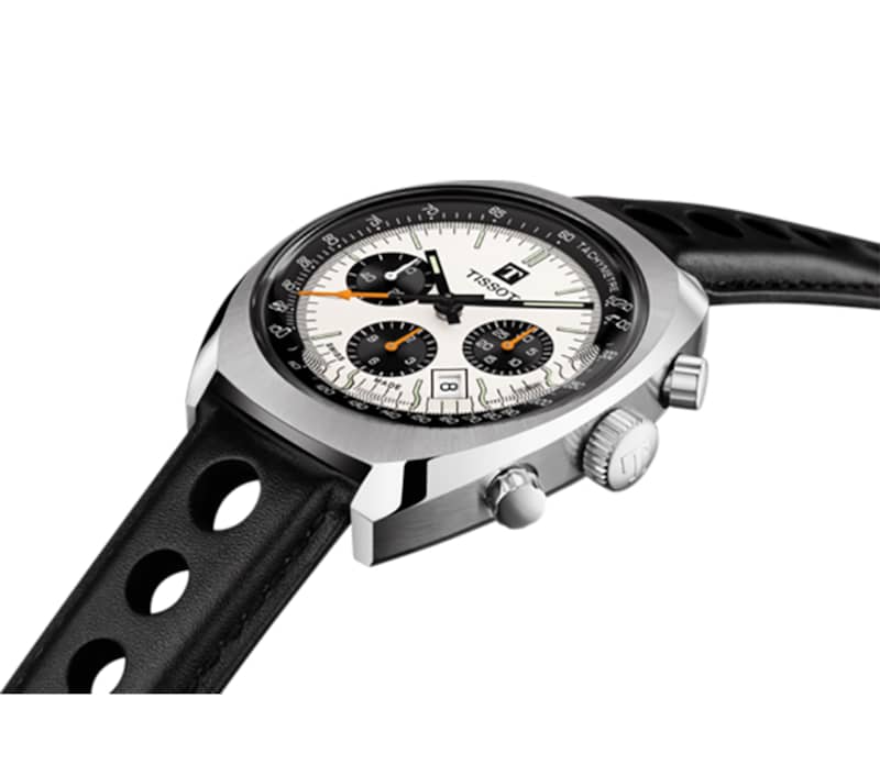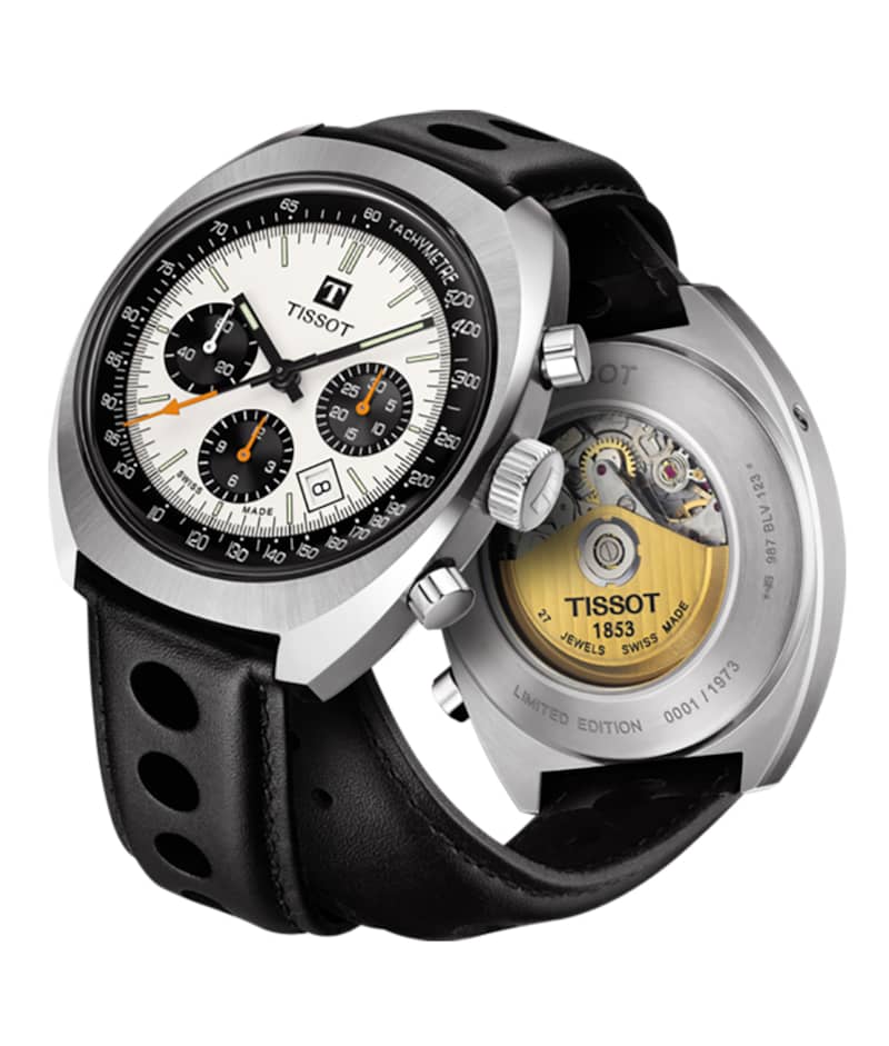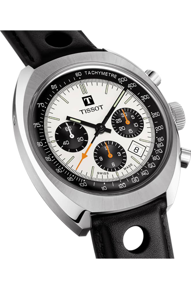 Tissot Heritage 1973 Chronograph Silver Dial Black Leather Strap Watch, 46.6mm