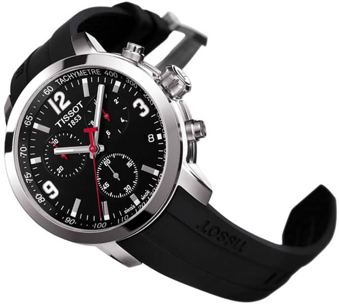 Tissot PRC 200 Chronograph Black Dial Silicone Strap Watch, 42mm