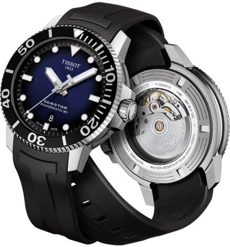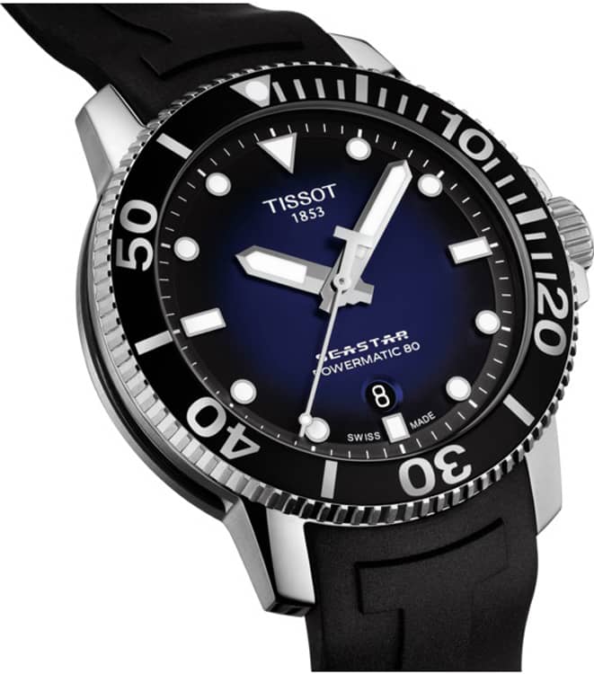 Tissot Seastar 1000 Powermatic 80 Blue Gradient Dial Rubber Strap Watch, 43mm
