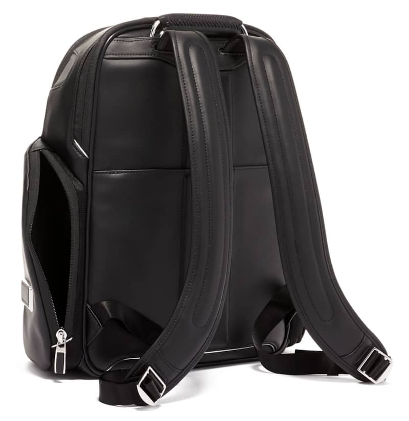 TUMI 1173351041 Arrive Larson Backpack In Black LeatherThis compact backpack offers modern utility and casual sophistication that’s perfect for your everyday needs. Appointed with just the right pockets, it fits (and protects) your laptop, water bottle, and other daily essentials. The Arrivé collection takes its cues from automotive design, with high-polish chrome details, elegant curves, and sleek magnetic zippers. Our ultra-modern pieces make world-class business partners and travel companions. Features