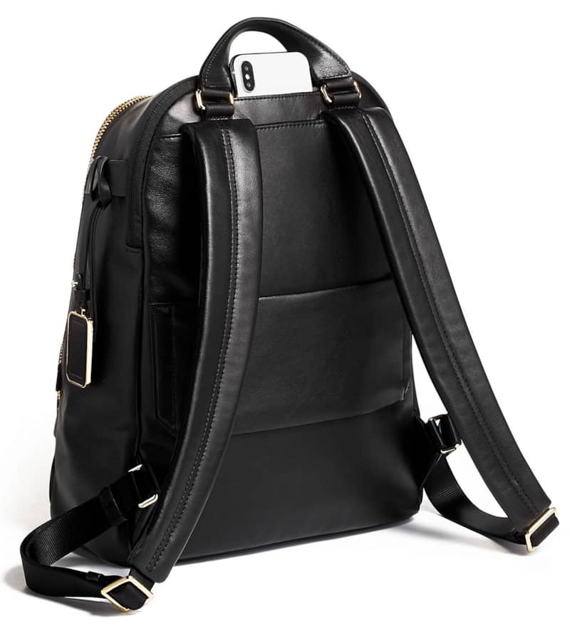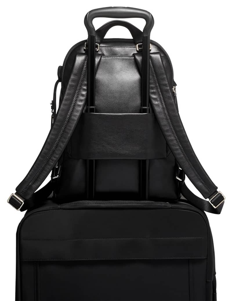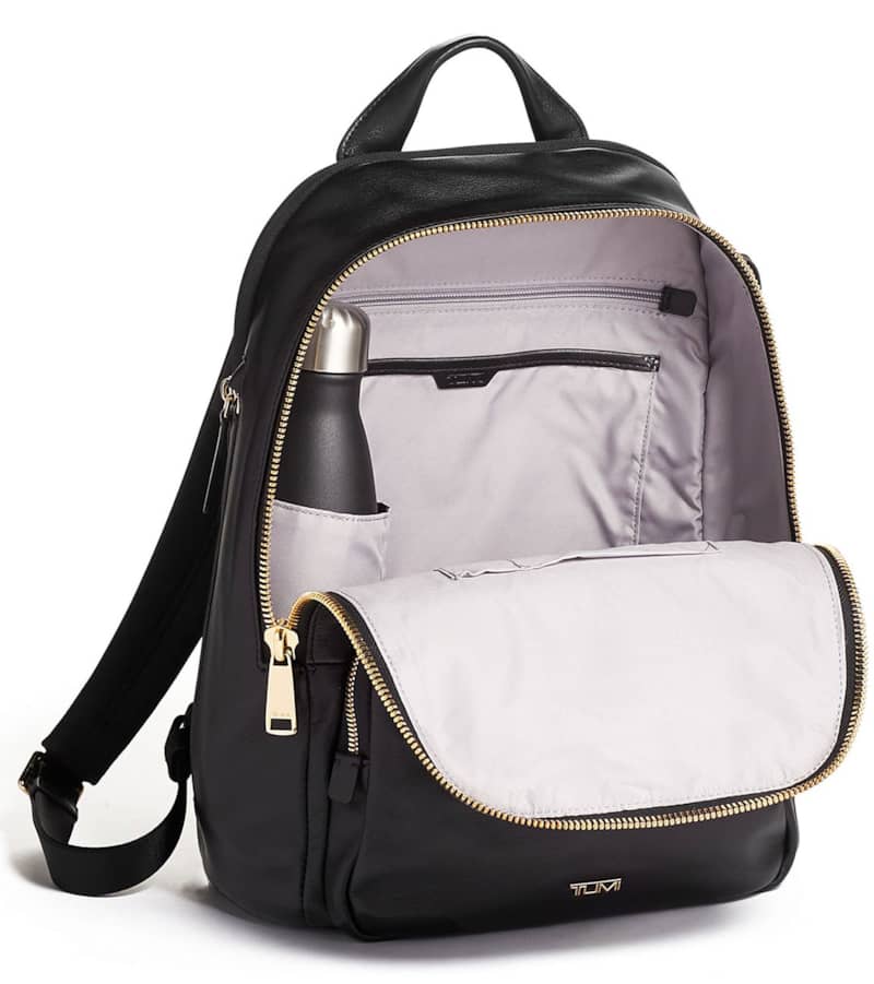 TUMI 135495-1041 Voyageur Hannah Backpack In Black LeatherElevate your everyday with this polished backpack that’s incredibly handy too. It’s designed with a roomy interior, a dedicated laptop compartment, a water bottle pocket that can be accessed from both inside and outside the bag, and lots of convenient pockets to organize your essentials. Purposeful, practical design that doesn’t compromise on style: Our Voyageur collection brings you versatile backpacks, bags, and accessories for women. Features