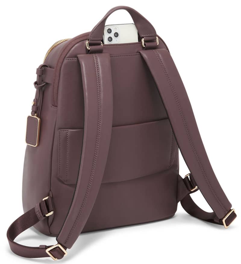 TUMI 135495-8484 Voyageur Hannah Backpack In Dark Mauve LeatherElevate your everyday with this polished backpack that’s incredibly handy too. It’s designed with a roomy interior, a dedicated laptop compartment, a water bottle pocket that can be accessed from both inside and outside the bag, and lots of convenient pockets to organize your essentials. Purposeful, practical design that doesn’t compromise on style: Our Voyageur collection brings you versatile backpacks, bags, and accessories for women. Features
