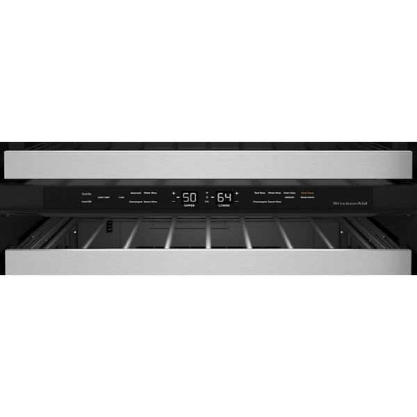KitchenAid 24″ Undercounter Wine Cellar with Glass Door and Metal-Front Racks