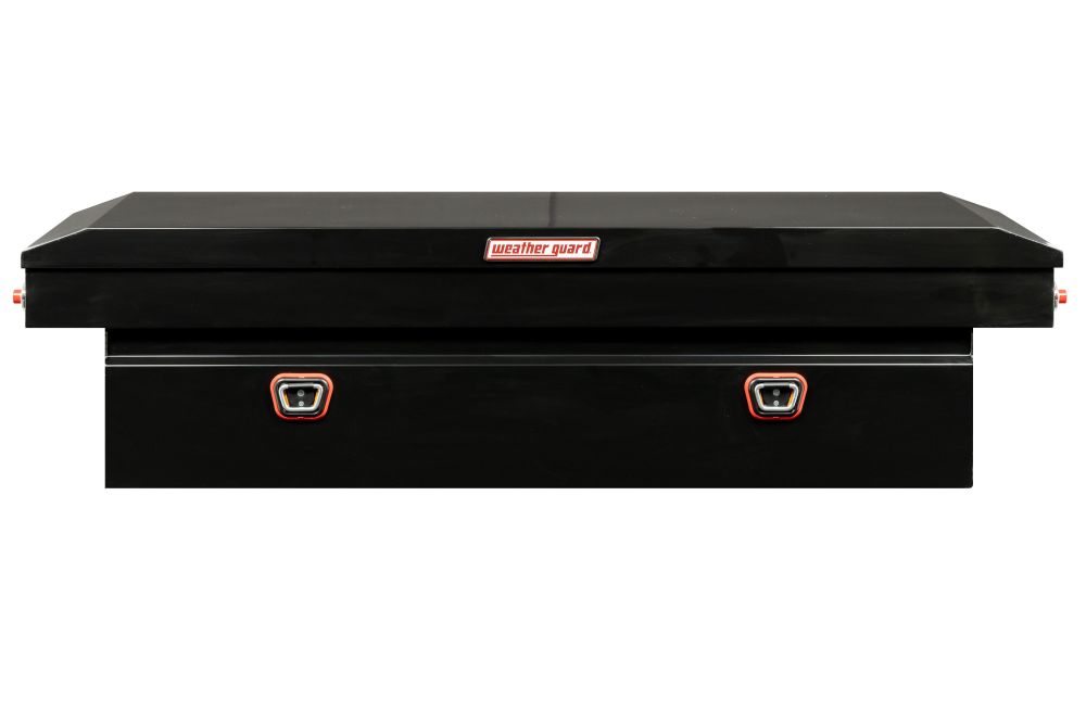 Introducing the re-designed Weather Guard Saddle Box, featuring One Key Simplicity, Improved High Security Locking System, and now PowerSync™ Capable. The Model 116-5-03 is an extra wide steel truck tool box for full size trucks and is powder coated in a gloss black ARMOR TUF® finish ensuring years of dependability. The box features the new push button lock that can code multiple boxes on a truck or entire fleet to the same key. The improved high security locking system provides unmatched protection. The box is now compatible with the new PowerSync™ interior lights & remote keyless entry accessories.