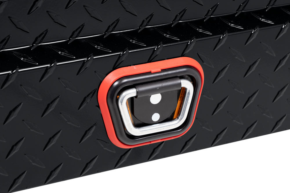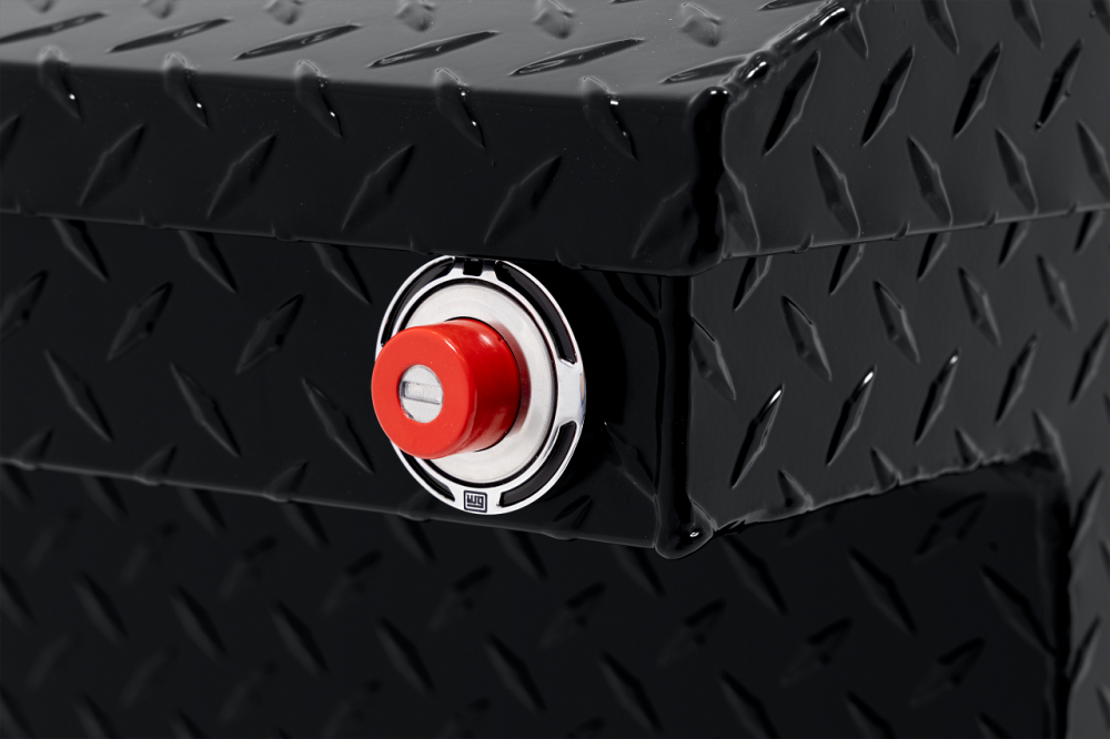 Introducing the re-designed Weather Guard Saddle Box, featuring One Key Simplicity, Improved High Security Locking System, and now PowerSync™ Capable. The Model 131-5-03 is a low profile aluminum truck tool box for compact trucks and is powder coated in a gloss black ARMOR TUF® finish ensuring years of dependability. The box features the new push button lock that can code multiple boxes on a truck or entire fleet to the same key. The improved high security locking system provides unmatched protection. The box is now compatible with the new PowerSync™ interior lights & remote keyless entry accessories.