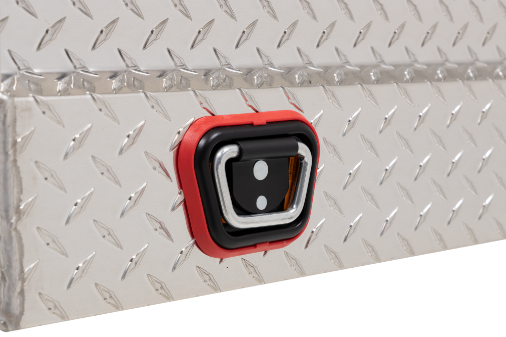 Introducing the re-designed Weather Guard Saddle Box, featuring One Key Simplicity, Improved High Security Locking System, and now PowerSync™ Capable. The Model 131-0-03 is a low profile aluminum truck tool box for compact trucks and is powder coated in a clear ARMOR TUF® finish ensuring years of dependability. The box features the new push button lock that can code multiple boxes on a truck or entire fleet to the same key. The improved high security locking system provides unmatched protection. The box is now compatible with the new PowerSync™ interior lights & remote keyless entry accessories.