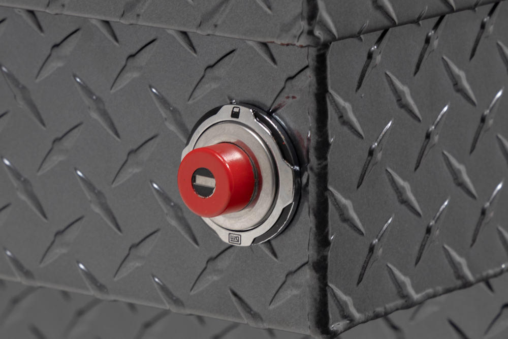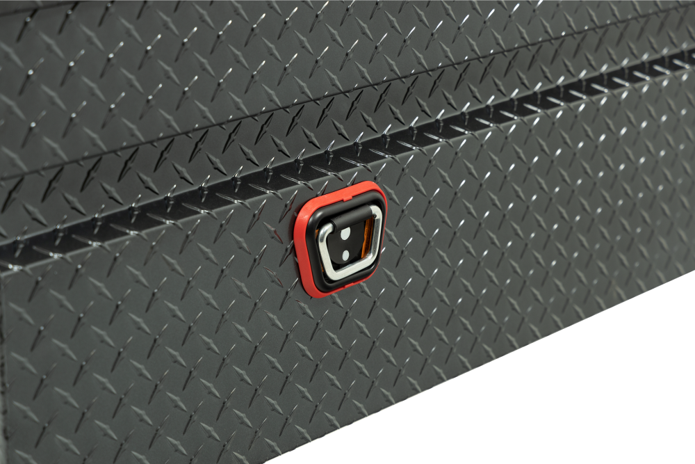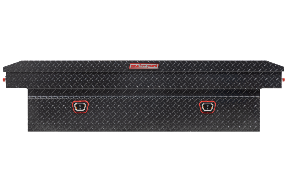 Introducing the re-designed Weather Guard Saddle Box, featuring One Key Simplicity, Improved High Security Locking System, and now PowerSync™ Capable. The Model 117-6-03 is an extra wide aluminum truck tool box for full size trucks and is powder coated in a gunmetal gray ARMOR TUF® finish ensuring years of dependability. The box features the new push button lock that can code multiple boxes on a truck or entire fleet to the same key. The improved high security locking system provides unmatched protection. The box is now compatible with the new PowerSync™ interior lights & remote keyless entry accessories.