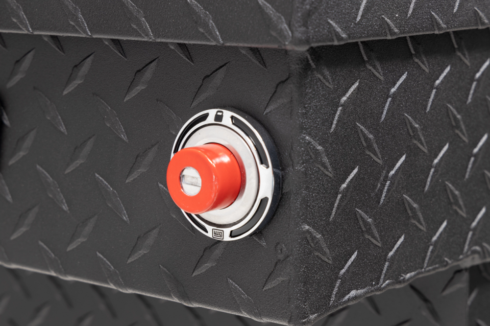 Introducing the re-designed Weather Guard Saddle Box, featuring One Key Simplicity, Improved High Security Locking System, and now PowerSync™ Capable. The Model 137-52-03 is a deep aluminum truck tool box for compact trucks and is powder coated in a textured matte black ARMOR TUF® finish ensuring years of dependability. The box features the new push button lock that can code multiple boxes on a truck or entire fleet to the same key. The improved high security locking system provides unmatched protection. The box is now compatible with the new PowerSync™ interior lights & remote keyless entry accessories.