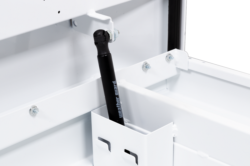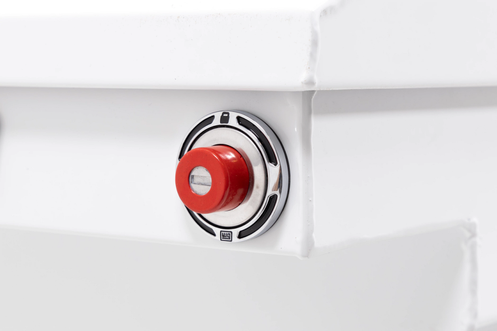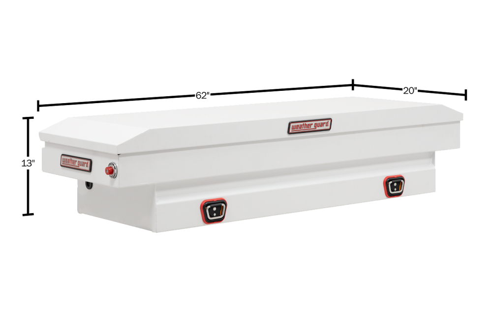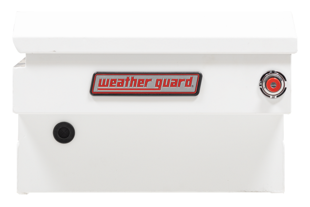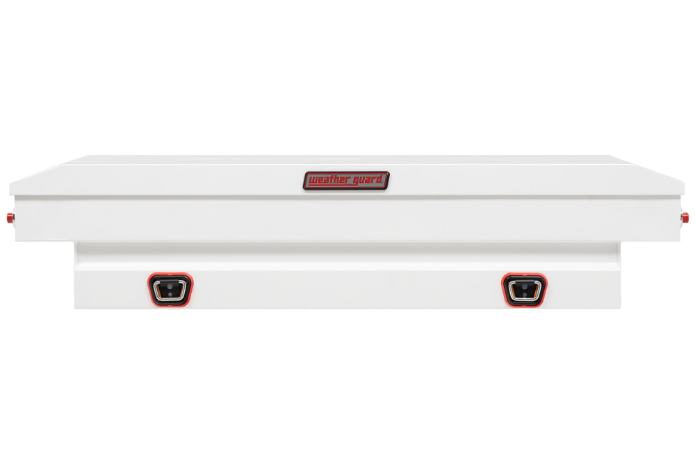 Introducing the re-designed Weather Guard Saddle Box, featuring One Key Simplicity, Improved High Security Locking System, and now PowerSync™ Capable. The Model 156-3-03 is a steel truck tool box for compact trucks and is powder coated in a white ARMOR TUF® finish ensuring years of dependability. The box features the new push button lock that can code multiple boxes on a truck or entire fleet to the same key. The improved high security locking system provides unmatched protection. The box is now compatible with the new PowerSync™ interior lights & remote keyless entry accessories.