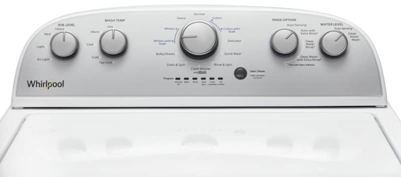Whirlpool Top Load Washer With Soaking Cycles (3.8 Cu. Ft.)This Whirlpool top load washer is made with high-capacity loads in mind. A full 3.8 cubic feet of capacity within is designed for large families—toss in towels, sheets, linens and clothes: the cavernous drum is ready to clean. Meanwhile, an internal dual-action agitator ensures that every stitch is as clean as can be when the cycles end. This model tops other Whirlpool laundry appliances when it comes to size, but other smart features help ensure that this model is more than just a large drum. Next-Gen Features, High CapacityYour laundry room gets a little smarter when you install this Whirlpool top load washer. Classic cycles and features like temperature selection and extra rinsing options are all here, while new options help to save water and conserve energy at the same time. Auto Sensing uses automatic sensors to detect the level of linens and clothes within, adjusting based on your load size. Alternatively, opt for deep water to fill to the top and push through stuck-on soils. Meanwhile, a soaking cycle helps to soak garments before cleaning them, filling up with suds and waiting before starting up again. Make sure to match your high-capacity device with a large Whirlpool dryer as well. Looking for a new model and not sure that this Whirlpool top load washer is the one? The experts at Abt have been helping people choose the appliances that are right for their families for years, whether it’s a stackable washer and dryer that fits in a closet or a pair of smart appliances that connect to your smartphone. Give our team a call at 847-954-4140 for more help, or head into the store to see our selection in person. Alternatively, do some research from home with our washing machine buying guide. Features