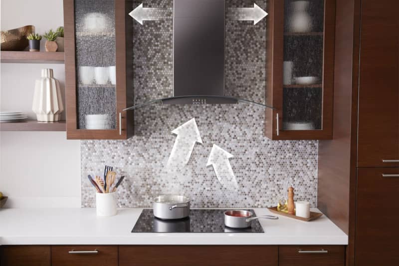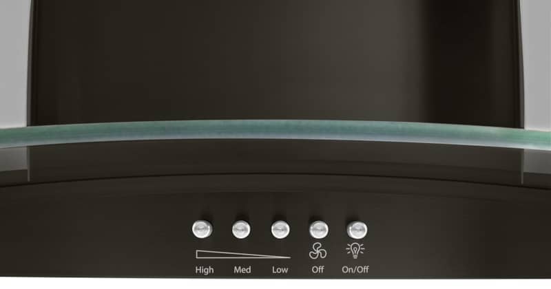 Whirlpool WVW51UC0HV 30″ Fingerprint Resistant Black Stainless Steel And Concave Glass Wall Mount Range HoodWith three fan speeds, this 400 CFM motor class wall mount kitchen hood provides the right ventilation for every meal you prepare and looks good while doing so. Long-lasting LED task lighting shines a bright light to show you what’s cooking, and a grease filter helps traps unwanted grease and odors. The range hood’s convertible ventilation means you can vent vapors and odors outside or filter them and recirculate the air, depending on your kitchen ventilation system setup. When venting at low speed, sound levels can get as low as 44 dBA. Features