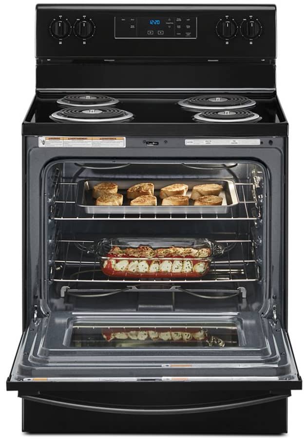 Whirlpool WFC150M0JB 4.8 Cu. Ft. Black Electric Range With Keep Warm SettingNote: The manufacturer does not include a power cord with this item due to different outlet configurations. Check your outlet configuration to determine which cord is required then click the accessories tab to purchase the correct one for your home. If you are still unsure, contact any of Abt’s Sales Specialists at 888.228.5800. This Whirlpool® electric range helps you get dinner to the table, even on a hectic schedule. The Keep Warm setting prevents dinner from getting cold. Closed door broiling helps keep the kitchen comfortable. You can also avoid unintended use with an oven control lock. Features