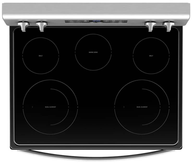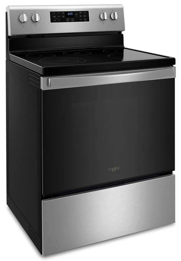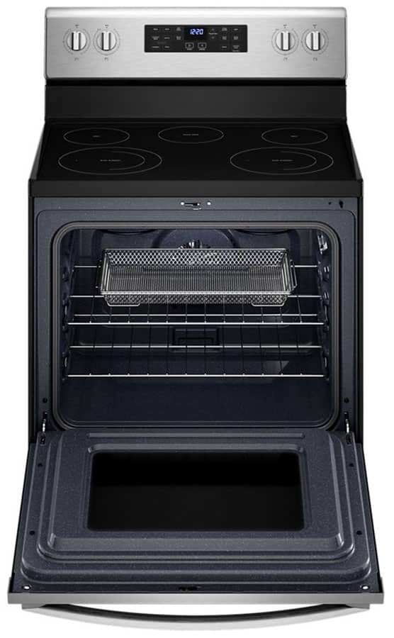 Whirlpool Electric Range with Air Fry ModeElevate your weeknights dinners with this 5-in-1 Whirlpool electric range. With built-in air frying capabilities, perfectly cooked meals are a finger tap away; simply press the corresponding to use Air Fry Mode, which creates the deliciously crispy results of deep frying with little to no oil. The included air fry basket is dishwasher safe, making both cooking and cleaning a breeze. Its design allows hot air to evenly circulate around foods like chicken wings or French fries for the perfect crunch. Additional cooking modes include Convect Bake, Broil, Bake and Frozen Bake™. If frozen pizzas are your family’s go-to dinner on busy nights, you’ll love Frozen Bake™ Mode—simply select the appropriate pre-programmed option for your frozen food of choice and your Whirlpool electric range will automatically adjust the cook time and temperature so you can skip preheating. Use Broil to brown the top of your homemade lasagna or sear a steak without overcooking its medium-rare interior; your Whirlpool electric range is the perfect companion to any menu. A Convenient Electric CooktopThis Whirlpool electric range has a powerful oven, but its cooktop offers plenty of cooking convenience, too. With two FlexHeat™ dual radiant elements, you can enjoy double the cooking power with a 6″ inner ring and a 9″ outer ring. You’ll be able to use cookware of any size without worrying about which burner to set it on. Enjoy greater convenience with the Warm Zone element, which is designed to keep finished dishes at the proper serving temperature while you finish cooking the rest of your meal. Its low power means food won’t burn or bubble over and each dish can be enjoyed as you intended. If you have questions about the features on this Whirlpool kitchen appliance, reach out to an Abt expert at 800-814-7572. For additional information, please see our kitchen range buying guide. Note: The manufacturer does not include a power cord with this item due to different outlet configurations. Check your outlet configuration to determine which cord is required then click the accessories tab to purchase the correct one for your home. If you are still unsure, contact any of Abt’s Sales Specialists at 888.228.5800. Features