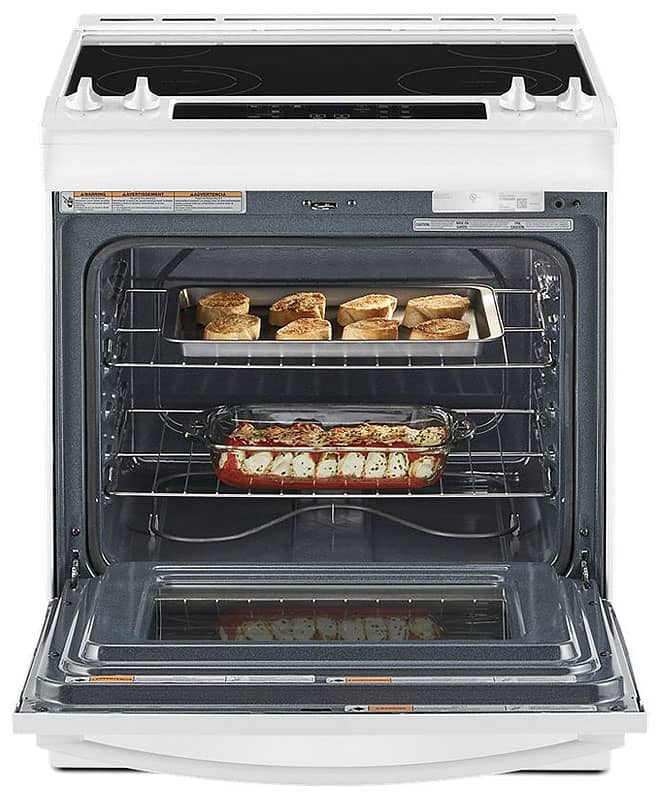 Frozen Bake™ on Display: 34″ Tall Whirlpool Slide-In Electric RangeNote: The manufacturer does not include a power cord with this item due to different outlet configurations. Check your outlet configuration to determine which cord is required then click the accessories tab to purchase the correct one for your home. If you are still unsure, contact any of Abt’s Sales Specialists at 888.228.5800. Everyone has a stainless steel kitchen—go against the status quo with a shining white surface that’s as easy to use as it is powerful. Meet the 34″ tall Whirlpool slide-in electric range. This high-speed cooker is optimized for counter heights that are a little shorter than standard, making it ADA compliant for easy access to all. The cooktop features two FlexHeat™ dual radiant elements, with a 6″ ring perfect for smaller pans and larger 9″ ring designed for larger pots and boils. All four burners will have you performing simple meal prep tasks or cooking multi-course meals with ease. High Power, Fast BakingElectric ovens are often envied by professional bakers for their dry heat and even baking temperatures. But this model’s new tech attracts a different audience: anyone who needs to get dinner on the table fast. Open the door and meet Frozen Bake™ technology. This Whirlpool slide-in electric range is designed to completely skip the preheating process in some frozen favorite foods like pizza. With no need to preheat, you’ll be able to toss your food from the freezer right into the oven—that means fewer steps between when you start dinner and when everyone gets to dig in. Other built-in features include a keep warm setting, broil mode, and adjustable high-powered self-cleaning cycle to help remove leftover residue and grease. To take the best care of your kitchen cooker, arm yourself with knowledge and learn how to clean an oven quickly and easily. Not sure if this Whirlpool slide-in electric range is the right model for you? Get an expert opinion by giving our specialists a call at 800-860-3577. Our team members have been helping clients build their dream kitchens for decades, and we’re ready to help you pick out everything you need. Give us a call, stop by the store, or read up online with our Kitchen Range Buying Guide. Features