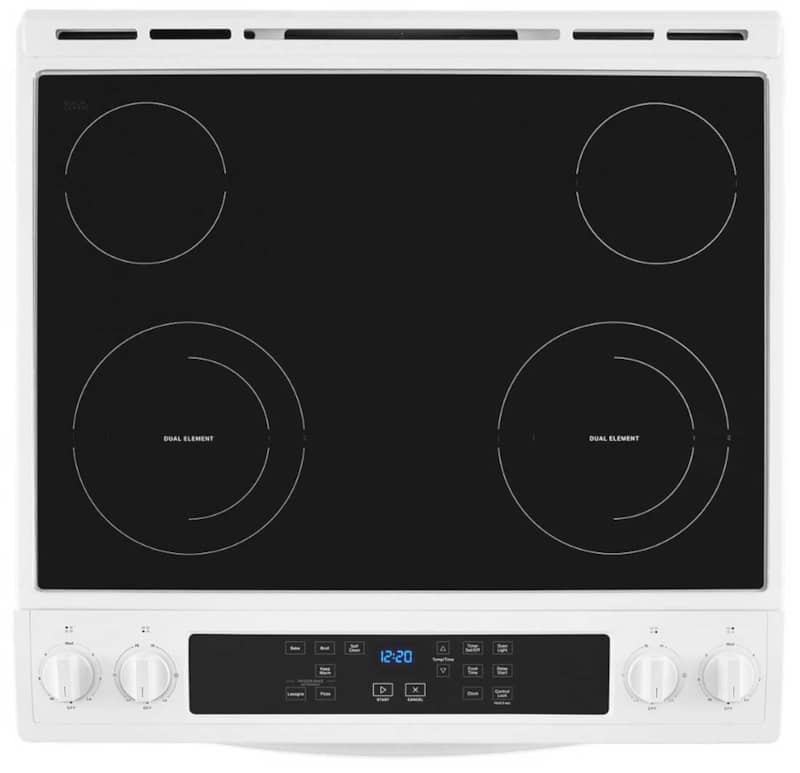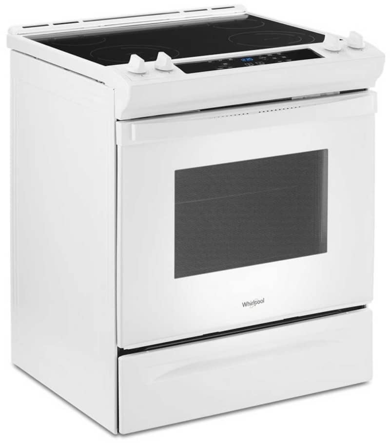 4.8 cu. ft. Whirlpool Electric Range with Frozen Bake™ TechnologyNote: The manufacturer does not include a power cord with this item due to different outlet configurations. Check your outlet configuration to determine which cord is required then click the accessories tab to purchase the correct one for your home. If you are still unsure, contact any of Abt’s Sales Specialists at 888.228.5800. A reliable range is an important component of your kitchen—from frozen pizzas to multi-course feasts, you can cook just about anything with these appliances. This Whirlpool electric range boasts incredible features to make mealtime easier and cooking more enjoyable, whether you’re feeding your family or hosting a dinner party. Its electric cooktop is equipped with two FlexHeat™ dual radiant elements that offers greater flexibility for cooking while cutting down time for steps like boiling water. The dual element front burners have a 6″ ring for smaller pots and pans (think a small saucepan) and a 9″ for larger cookware, perfect for preparing large meals or meal prepping. The cooktop also features indicator lights that let you know that it’s on or still hot, adding a level of safety to your home. The magic doesn’t stop there, though. The oven below is similarly equipped with great features like the Keep Warm setting, which uses low heat to keep meals ready to serve while you’re waiting for the kids to get home from their after school activities. What truly sets this range apart from the rest is its Frozen Bake™ technology, which allows you to skip preheating when you’re trying to cook frozen pizza or other popular frozen foods. Instead, your Whirlpool electric range is equipped with pre-programmed settings for those foods to automatically adjust the cooking time and temperature for flawless results. Best of all, this Whirlpool electric range is ADA compliant. If you want to know more about this Whirlpool range or any of our other Whirlpool appliances, visit our Glenview store to speak with an expert or give them a call at 800-914-2061. If you’re more curious about ranges in general, we also have a range buying guide to help you make the right decision. Features