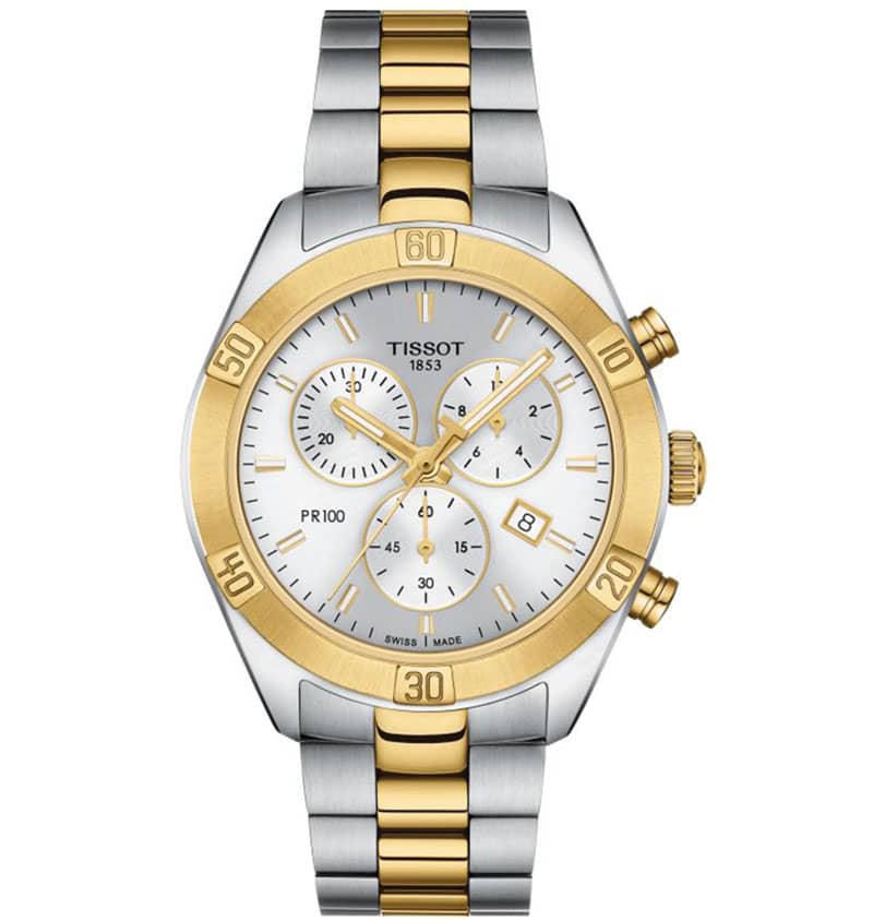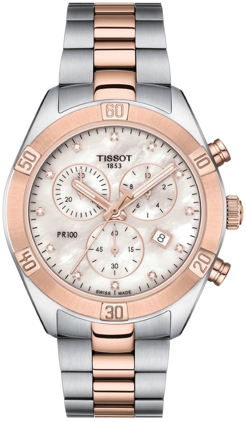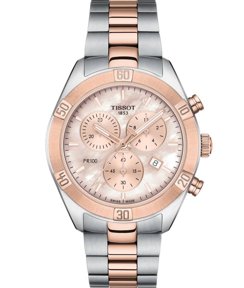 Tissot PR 100 Sport Chic Chronograph Pink MOP Dial Two-Tone Carnation Gold Bracelet Watch, 38mm
