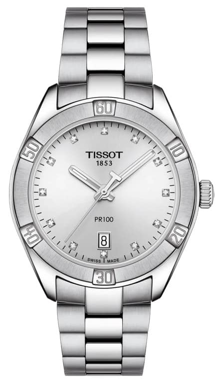 Tissot PR 100 Sport Chic Chronograph White MOP Dial w/ Diamonds Yellow Gold Bracelet Watch, 38mm