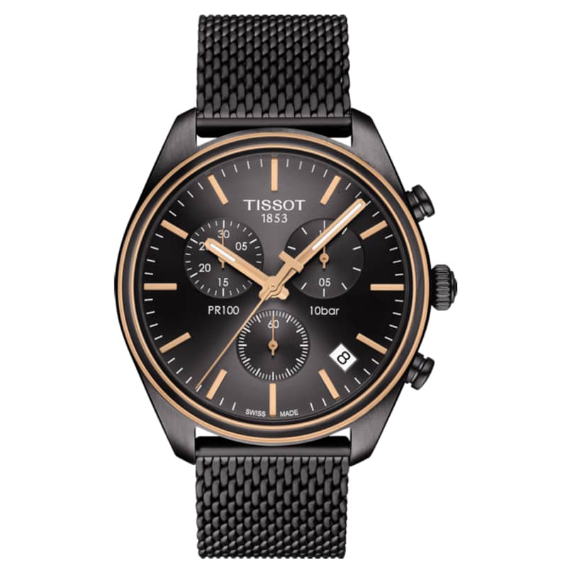 Tissot PR 100 Sport Chic Chronograph Pink MOP Dial Two-Tone Carnation Gold Bracelet Watch, 38mm